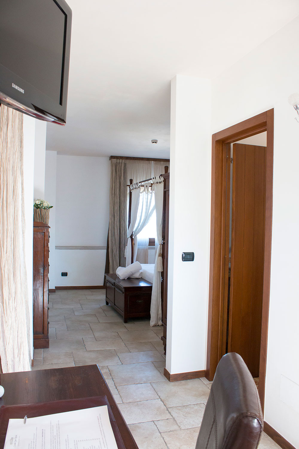 Possibilita’ di late check-out (ore 13.00) , servizio in camera gratuito, bollicine e frutta fresca al vostro arrivo , morbido accappatoio e ciabattine. “Il massimo del comfort”…. potrai godere di una grande vasca idromassaggio e di un romantico terrazzino con zona salotto.
