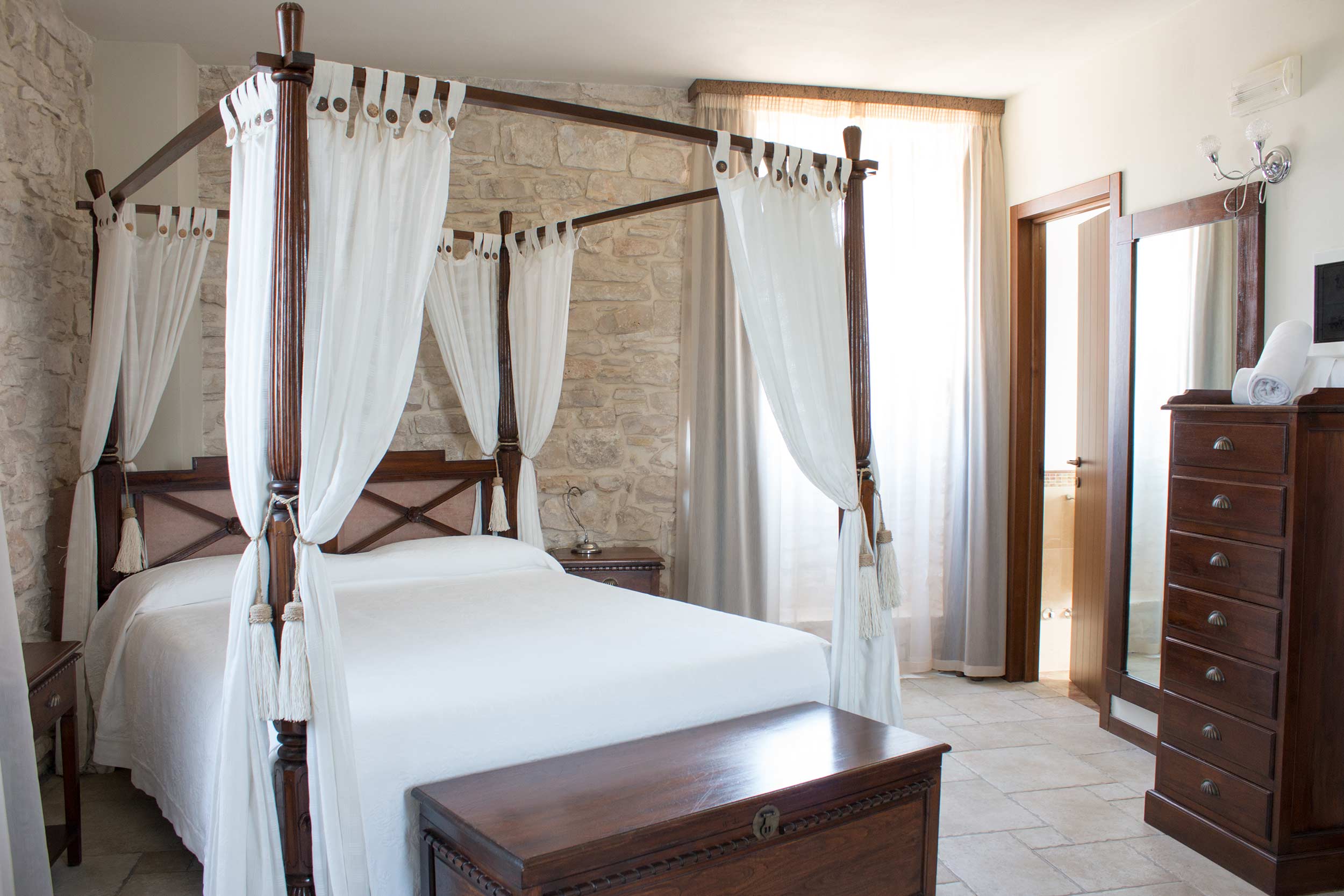 Connessione wi-fi e utilizzo del minibar gratuito. “Eleganti…” si affacciano nell’antica corte da cui potrai godere l’atmosfera del luogo; letto a baldacchino, una ampia zona relax con divano, televisore LCD e la sala da bagno finemente rivestita in marmo vi accoglieranno.